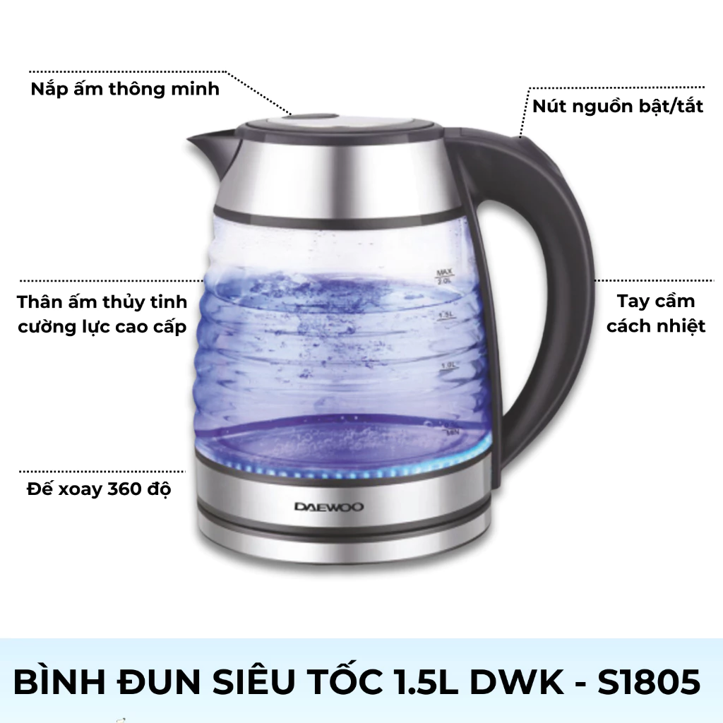 Đặc điểm nổi bật của Ấm đun Daewoo DWK-GL1803: