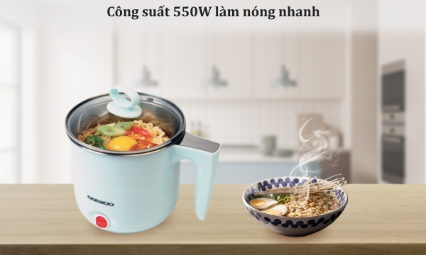 Ca nấu mì đa năng Daewoo DEN-M550 rất thích hợp cho 1- 2 người ăn hoặc mang theo khi đi du lịch. Tiện dụng hơn nữa khi bạn nấu đồ ăn nhanh ở cơ quan.