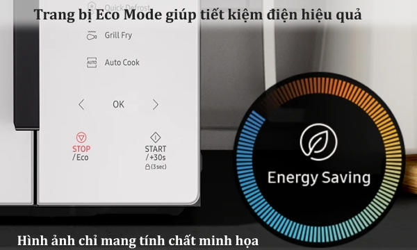 Lò vi sóng có nướng Samsung 23 lít MG23T5018CE/SV trang bị tính năng ECO Mode giúp tiết kiệm điện hiệu quả, giảm hao phí điện năng cho gia đình bạn trong quá trình sử dụng.