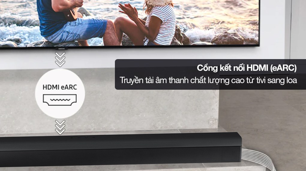 Loa thanh Samsung B-SOUNDBAR B650/XV được thiết kế để có thể linh hoạt trong khả năng kết nối với nhiều thiết bị khác nhau, mang đến sự tiện lợi và đa dạng cho người dùng. Với cổng HDMI, bạn có thể dễ dàng kết nối loa với TV để tận hưởng những trải nghiệm xem phim màn hình lớn cực kỳ tuyệt vời cùng chất âm đỉnh cao, giàu cảm xúc.