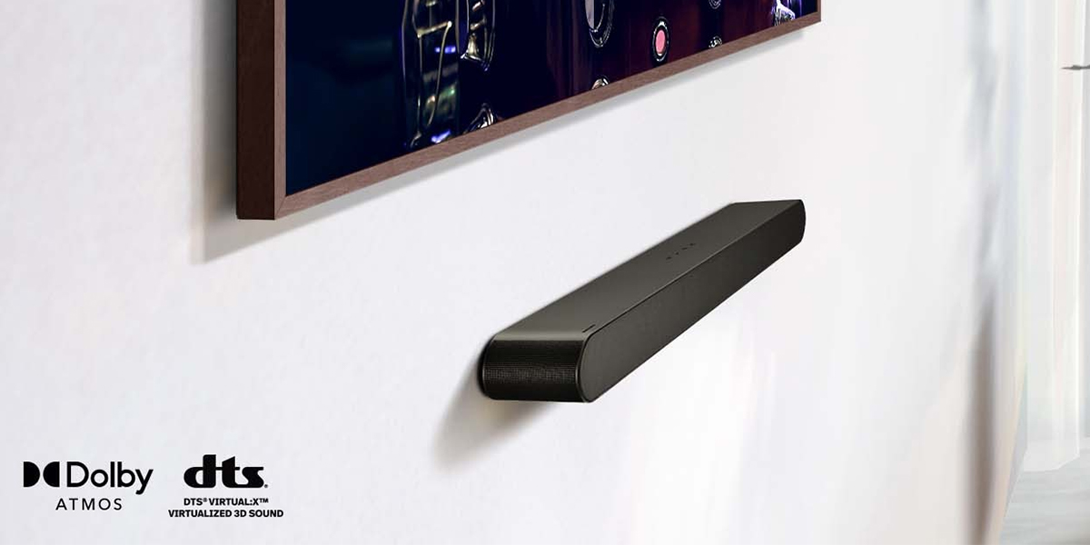 Loa thanh tích hợp loa trung tâm giúp tăng cường giọng nói, mang đến âm thanh rõ ràng, sắc nét trong từng lời thoại. Đây là tính năng lý tưởng cho các bộ phim, chương trình truyền hình, và hội thoại trong nội dung đa phương tiện.