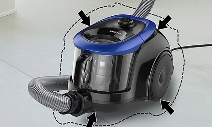 Máy hút bụi Samsung có thiết kế thông minh rất dễ dàng tháo lắp cùng dung tích bình chứa bụi 1.5 lít, nhờ vậy máy hút bụi có thể hút sạch bụi bẩn ở mọi ngóc ngách, khe rãnh và tất cả các bề mặt.