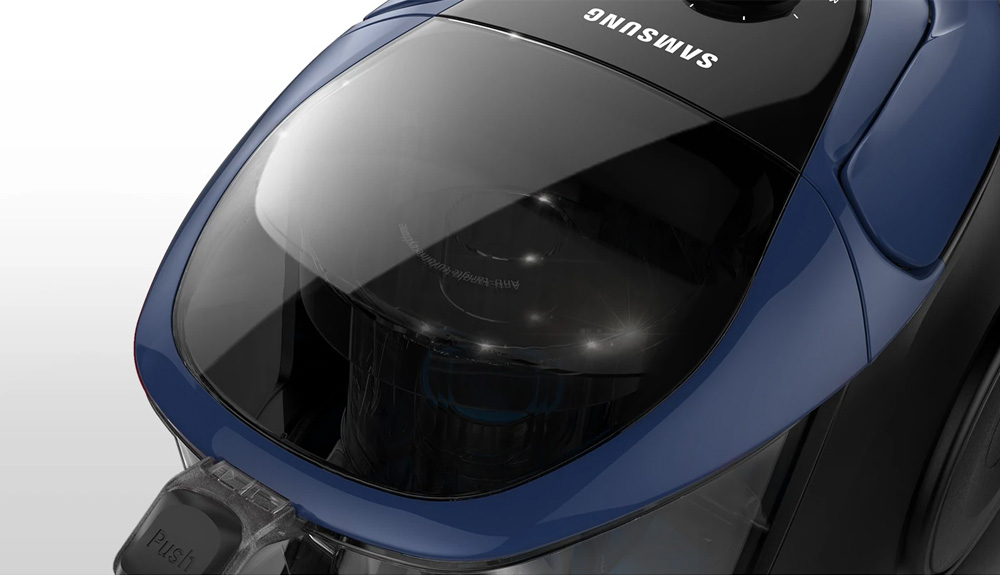 Máy Hút Bụi Samsung VC18M3110VB/SV có hộp chứa bụi rộng lớn với dung tích 2 lít cho phép bạn có thể hút được một lượng bụi đáng kể và không cần tốn nhiều thời gian cho việc đổ bụi. Bên cạnh đó với thiết kế trong suốt, bạn có thể dễ dàng kiểm tra chất bẩn bên trong một cách dễ dàng. Giờ đây bạn chỉ cần nhấn nút là hộp chứa sẽ nhanh chóng được tháo lắp, từ đó giúp người dùng có thể thuận tiện đổ bụi và vệ sinh.