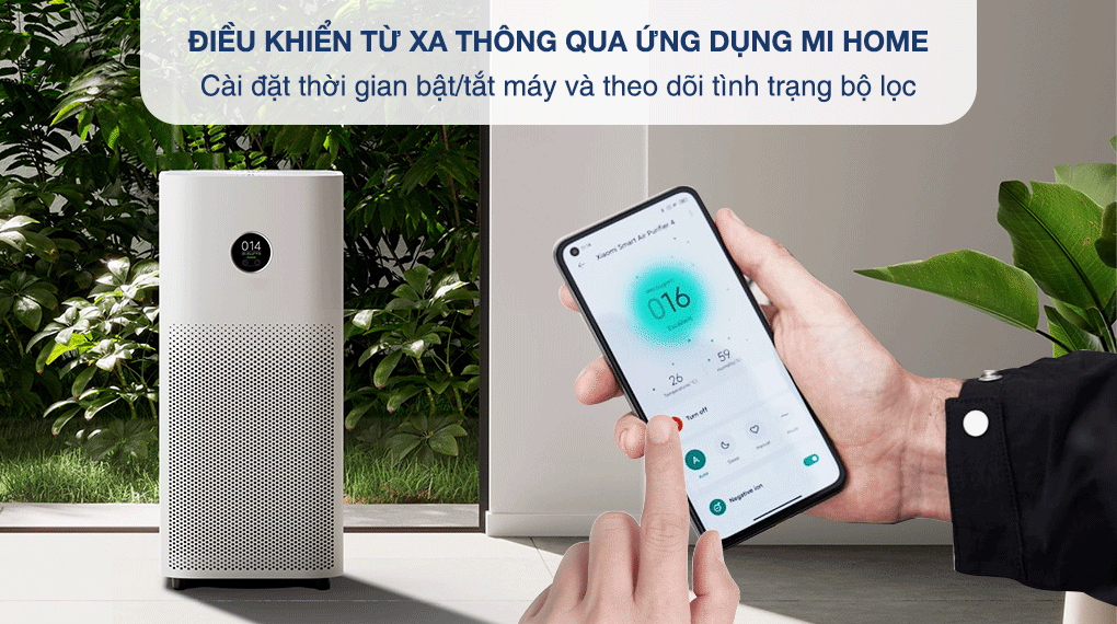 Máy lọc không khí Xiaomi Mi Air Purifier 4 có thể kết nối với App Mi Home trên điện thoại. Máy được trang bị kết nối Wifi để thiết lập và tùy chỉnh chế độ hoạt động: tự động, ban đêm, thủ công hay là nhắc nhở thời gian thay thế bộ lọc.