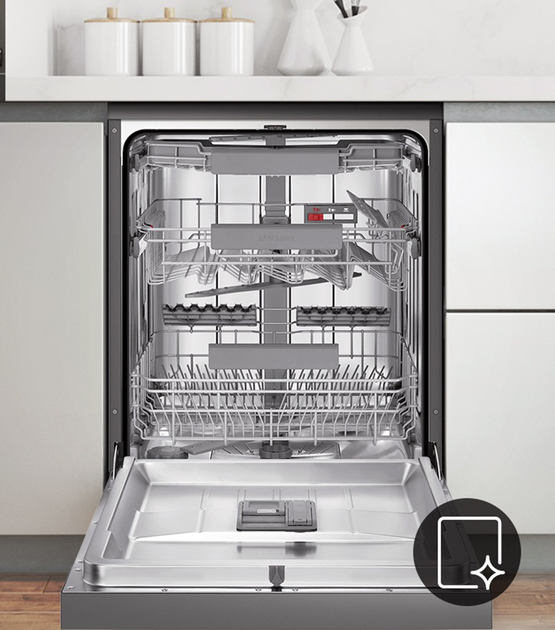 Khi quá trình rửa được hoàn tất, cửa máy rửa bát Samsung DW60CG550FSGSV sẽ được tự động mở để hơi nước dễ dàng thoát ra ngoài. Nhờ đó, tăng hiệu quả cho chức năng sấy nhiệt dư nhờ hạn chế tình trạng ngưng đọng nước và tích tụ vi khuẩn. Tính năng Cửa mở tự động cũng giúp không khí bên trong khoang rửa được cân bằng, giảm thiểu tình trạng ám mùi trong máy.
